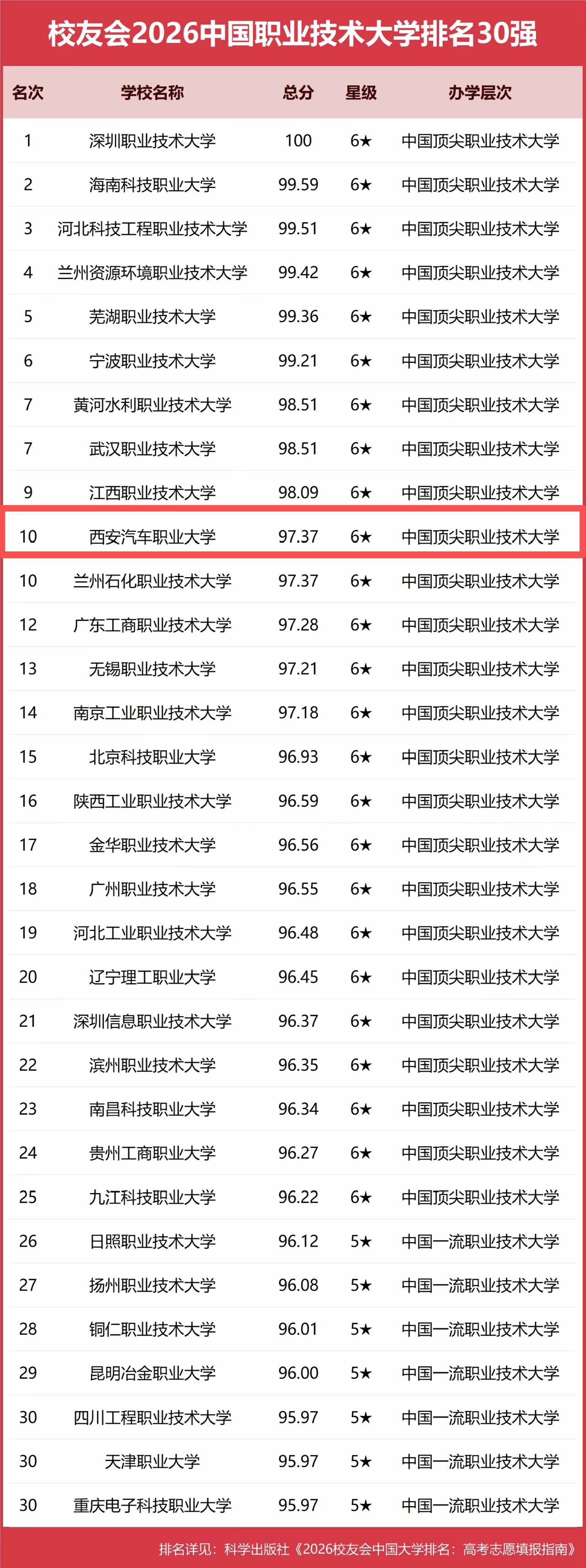 2026中国大学排名发布!西安汽车职业大学稳居平